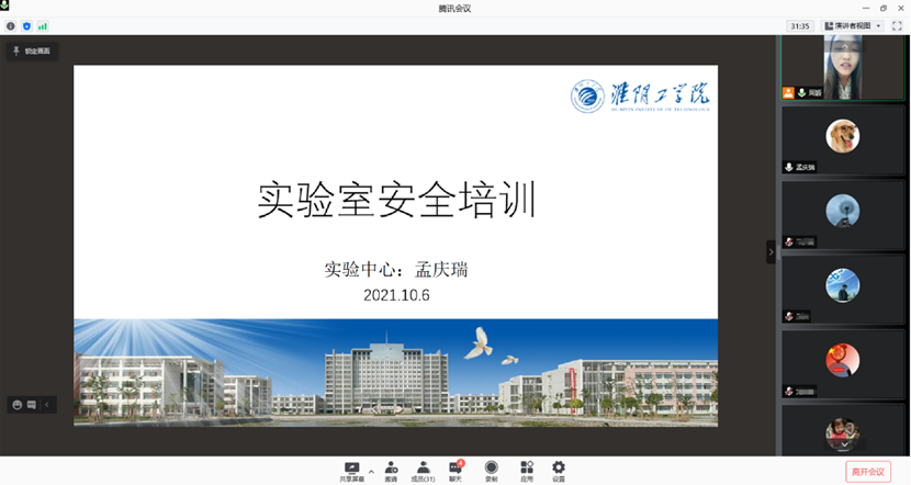 为了进一步加强实验室安全管理,帮助新入学研究生建立安全意识,有效预防实验室事故的发生,10月6日下午,​EVO真人视讯采用线上形式组织了21级研究生新生实验室安全培训活动,活动邀请了公司实验中心的孟庆瑞老师作了相关培训汇报。